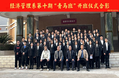 本网讯:12月14日下午,经济管理系在逸豪学术报告厅举行了第九期“青马班”结业仪式暨第十期“青马班”开班仪式。经济管理系主任钟滨、党总支书记卢帆兴、副主任梁文学、团总支书记王博文出席了此次仪式。“青马班”第九期、第十期学员、经济管理系团总支、员工会工作人员参加了此次仪式。