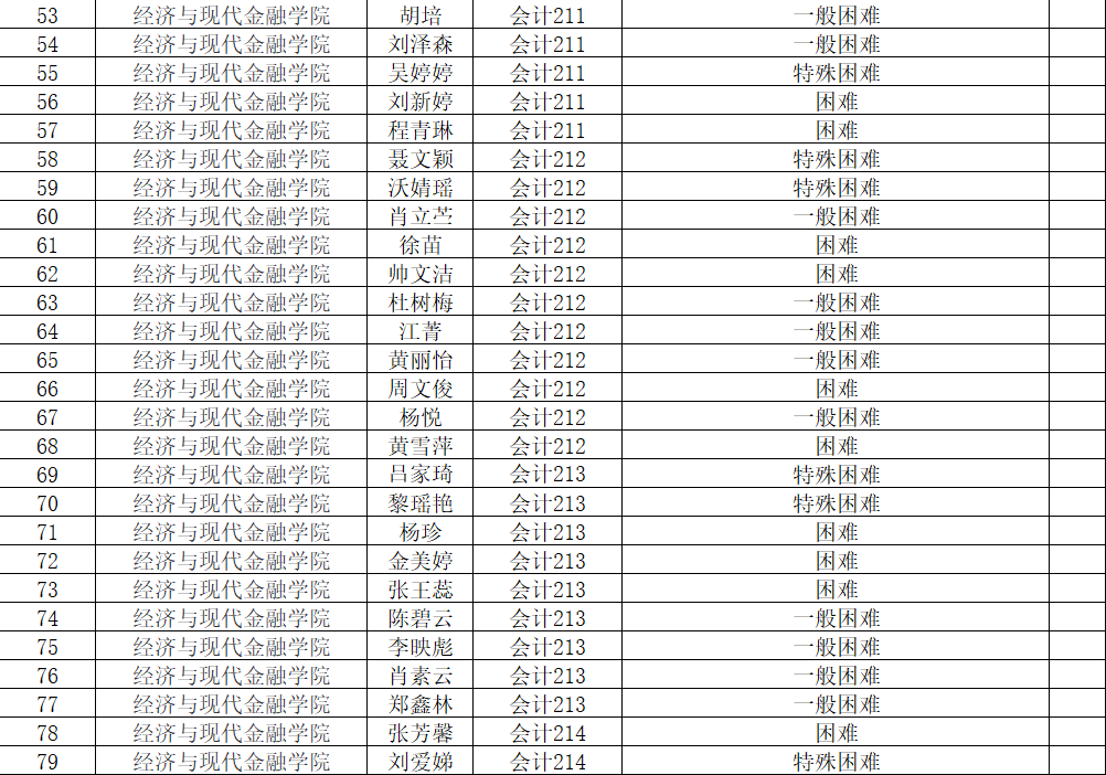 2021-2022学年2021级家庭经济困难员工信息统计表
